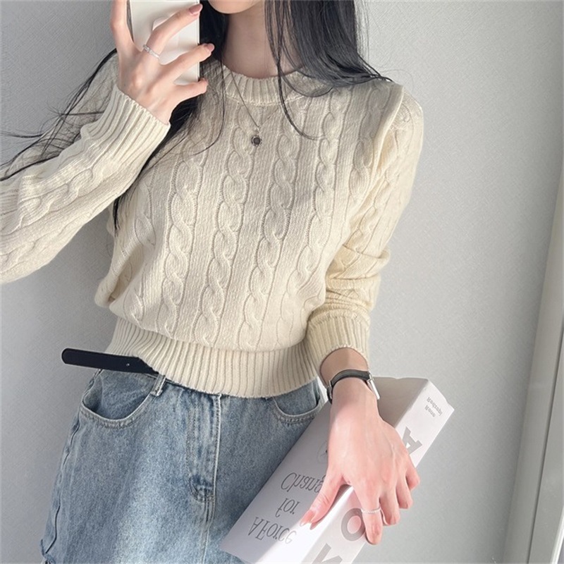 MILHEIR Short Cable-knit Sweater Long Sleeve